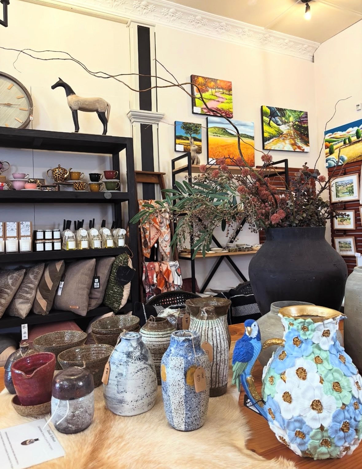 Visit our bricks & mortar store to browse a huge selection of original art, artisan silver jewellery, candles, pottery, locally made cards, garden ornaments, vintage antiques and so much more...