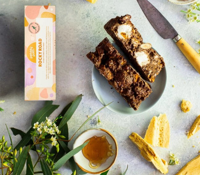 Combine this with beautiful nuts from the Darling River area, and chewy marshmallows, then all smothered in Pebbly Path's signature chocolate blend.