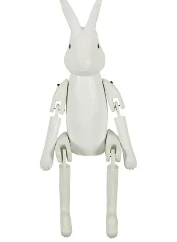 Our small white rabbit puppet is a cute! He is handmade and skilfully crafted in Bali. This endearing white small timber rabbit has a special charm and is a perfect Easter gift for any child, or even adult. White rabbit puppet has moveable limbs beautifully connected but flexible to swing around to create vitality and a sense of real life. Place white rabbit puppet on any shelf, counter, bedside or table and he will move his legs until the momentum stops. This beautiful charming wooden rabbit will light up any child or adult’s face with his serene and gentle charm.